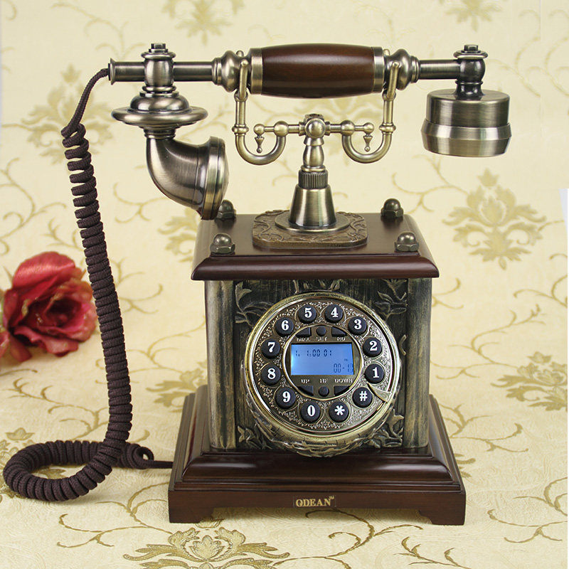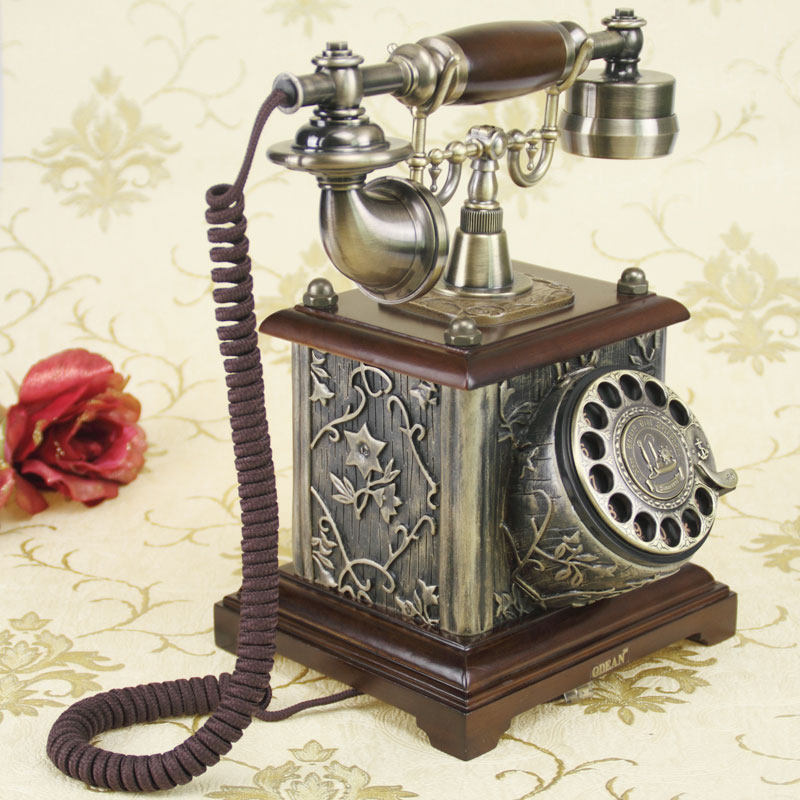 European-style solid wood antique craft telephone retro old-fashioned antique turntable rotary dial home office wired telephone landline