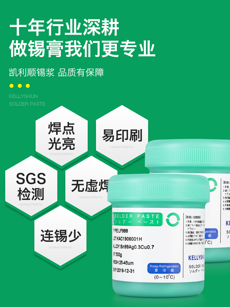 Kellyshun smt patch environmentally friendly lead-free high temperature solder paste Sn99Ag0 3Cu0 7 cleaning tin paste solder paste