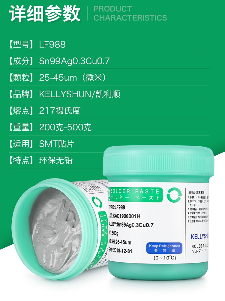 LF988 high-temperature solder paste (total weight 200 grams) melting point 217℃ LF988 high-temperature solder paste (total weight 500 grams) melting point 217℃ No. 4 powder LF988A high-temperature tin