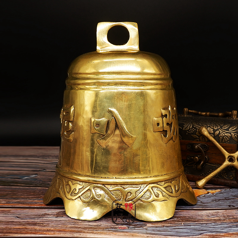 Pure copper Six words true brass bell pendant large number bronze bell Town Residence Ping'an Merchants Nafu Home Furnishing Accessories