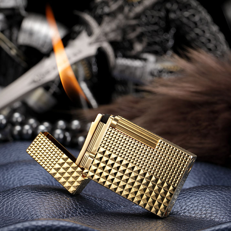 Imported lighter lighter home pure copper movement carved men's inflatable non -airproof gas retro wheels
