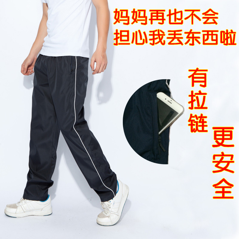 Spring and autumn student school uniform pants dark blue men's and women's casual sports pants junior high school quick-drying breathable thin straight school pants