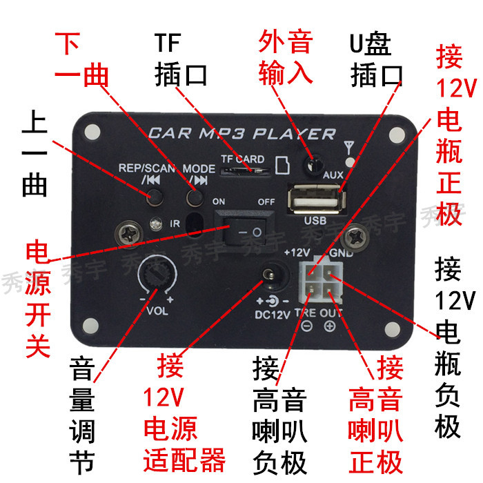 045 dual 2003 power amplifier board 5 inch 12V car woofer card gun core MP3 decoder board 20W power amplifier