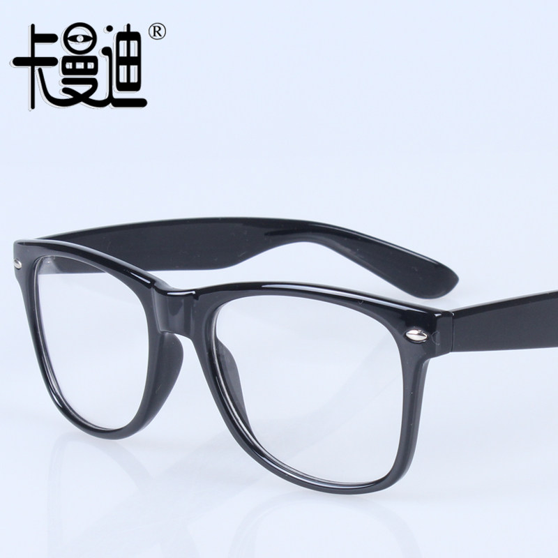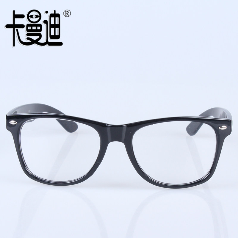 Kamandy fashion rice nail round frame glasses lovers mirror black frame flat light men and women with same mirror can plus money for myopia