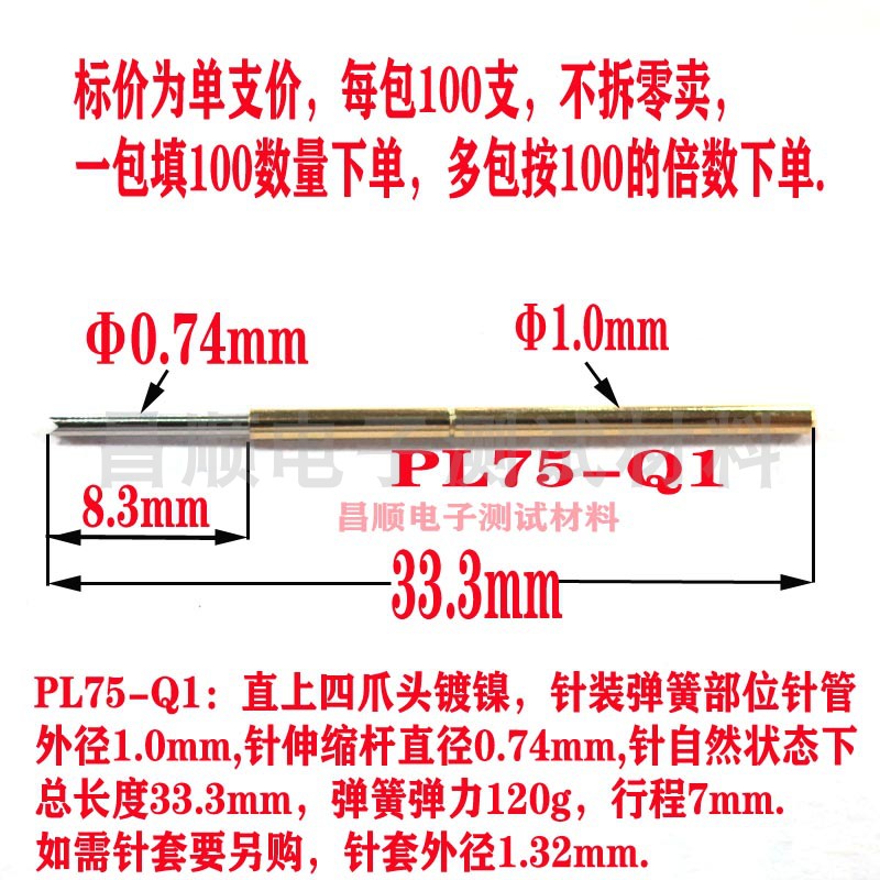 PL75-Q1 straight upper four-claw head PCB test needle probe spring needle thimble frame needle tool needle