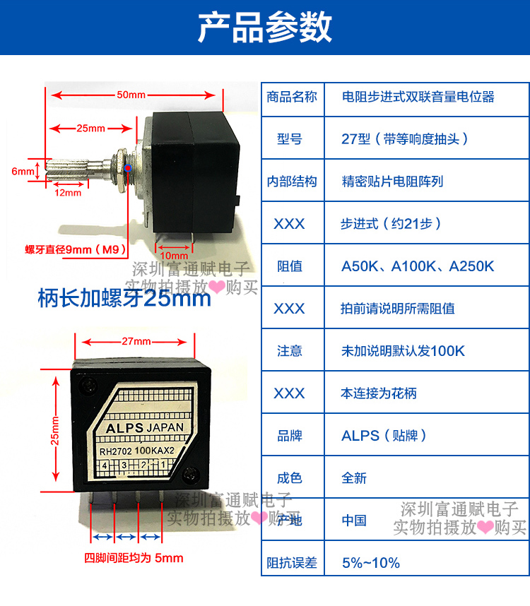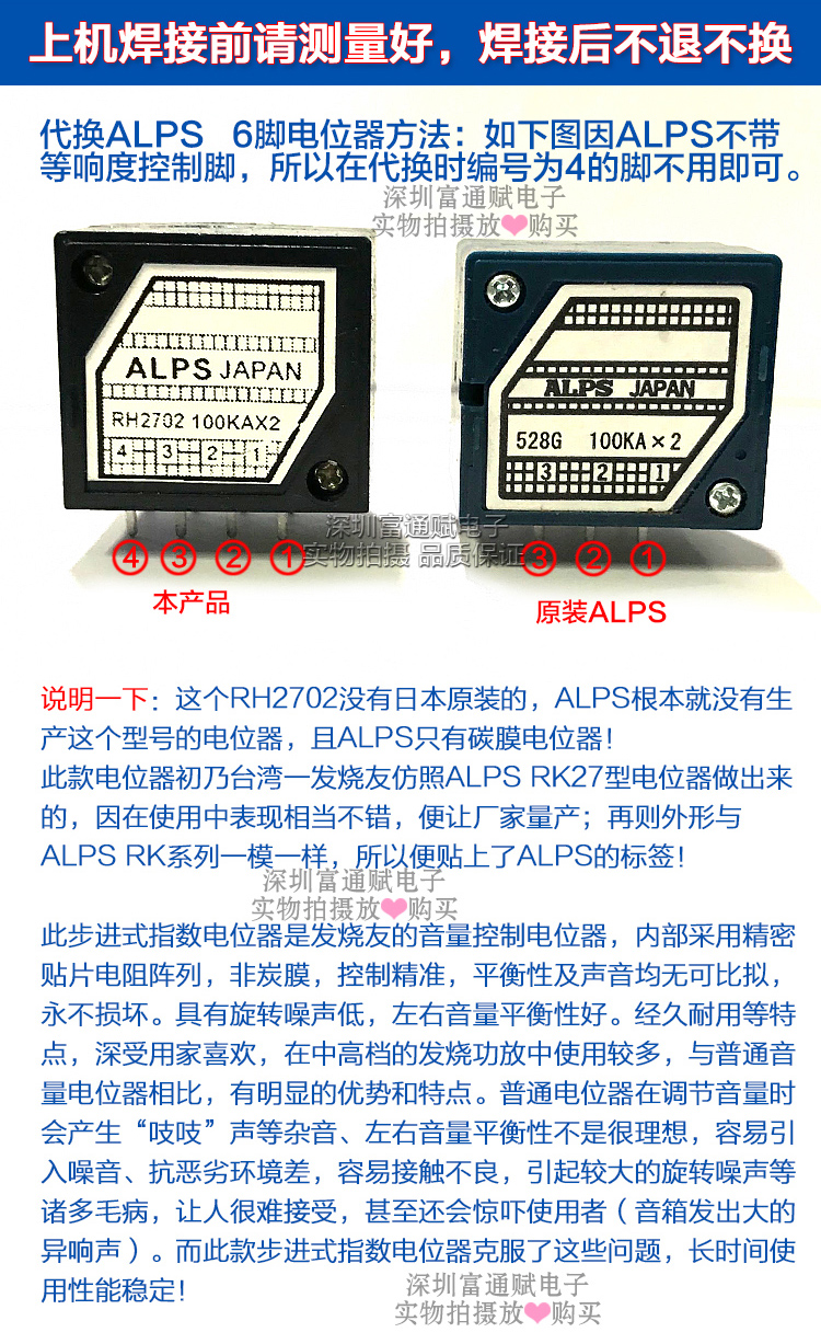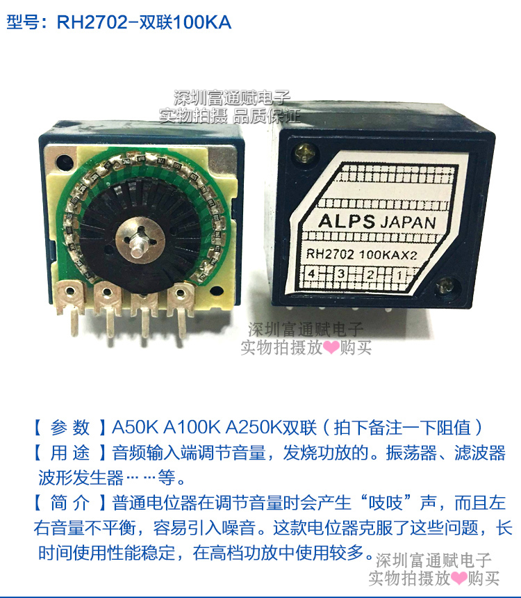 High-quality audiophile ALPS resistance stepper type 27 double volume potentiometer RH2702-100KA exponential type