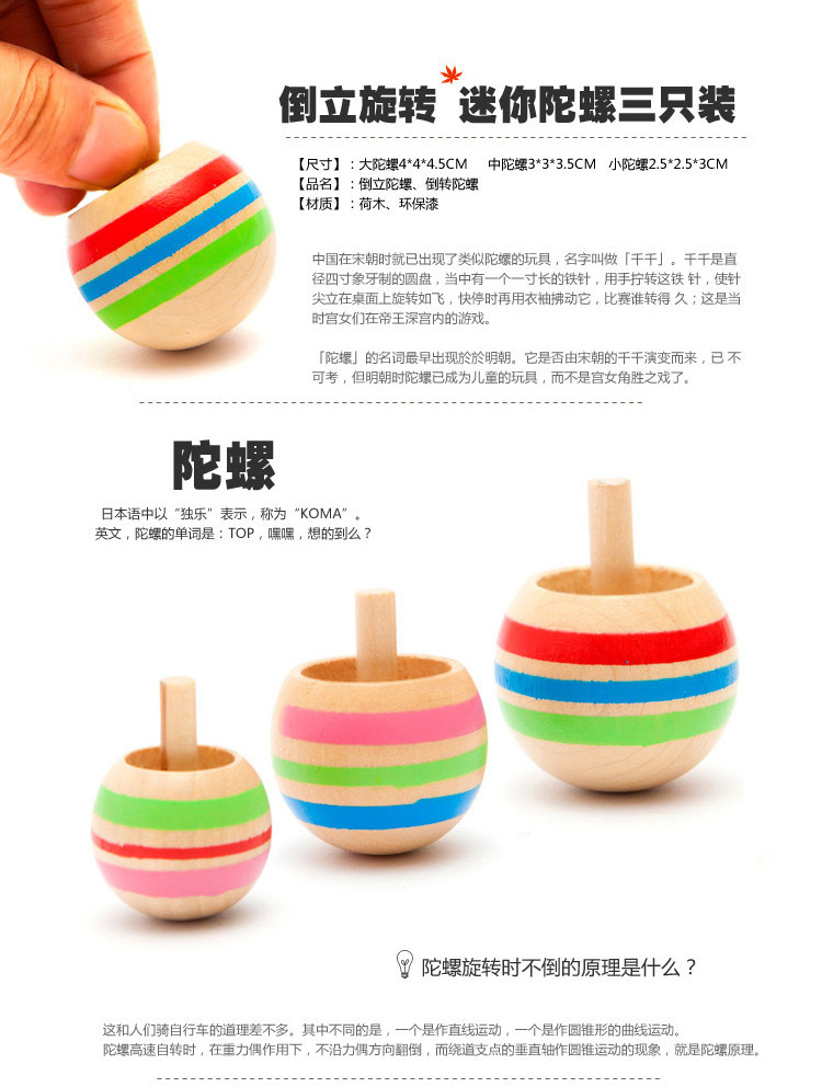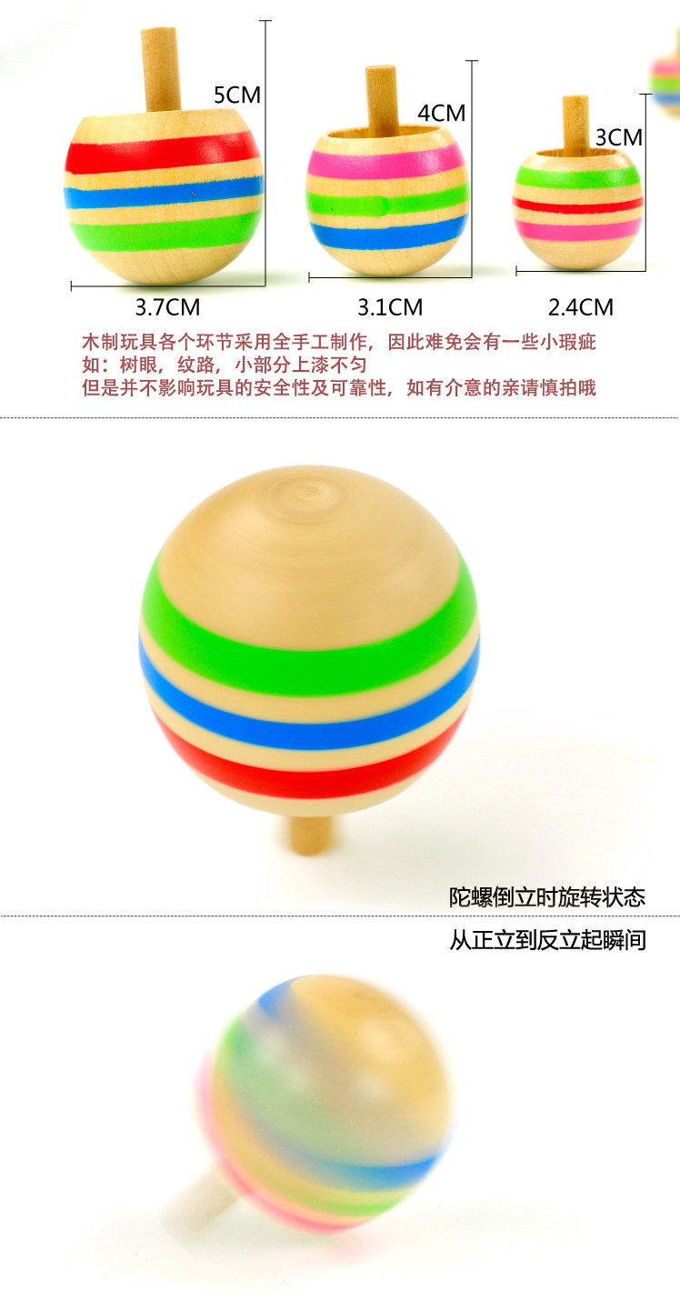 Children's foreign trade toys wooden hand flip color Japan's reverse rotation gyroscope small and medium - sized suits