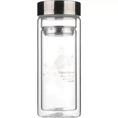Fuguang double-layer glass men and women portable tea filter water cup creative round transparent office and household with lid
