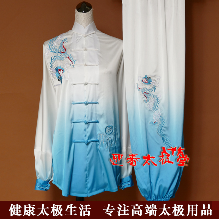 High-grade gradient tai chi suit training suit men's and women's embroidered dragon and phoenix professional martial arts performance suit competition suit