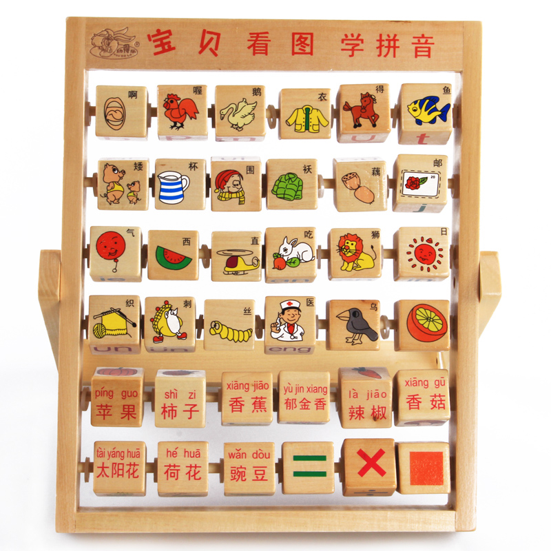 3-year-old children's educational toys wooden early education to see pictures learn pinyin digital flip frame building blocks geometric cognition