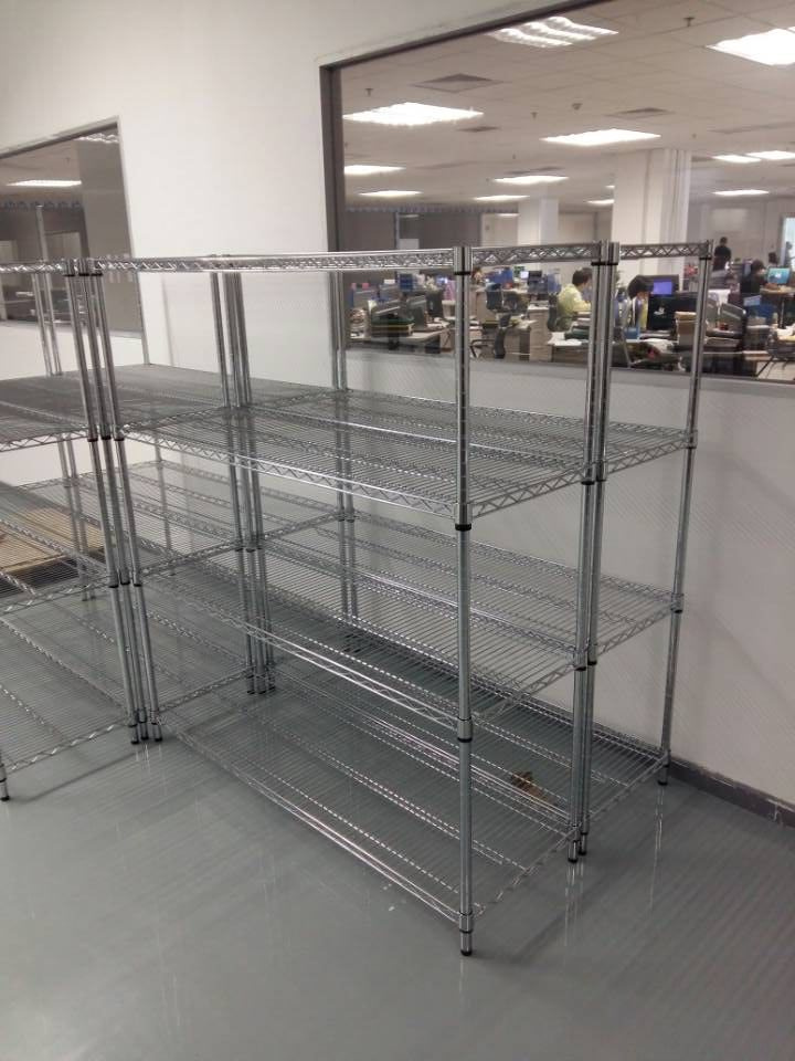 Chrome wire mesh shelf Stainless steel storage warehouse shelf with wheels removable household shelf Display shelf