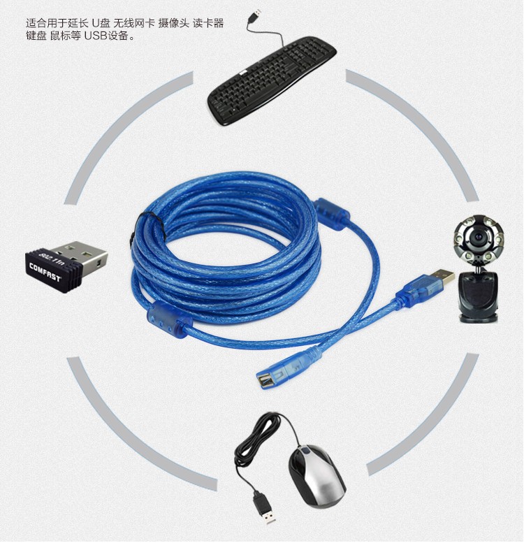 New 5 m blue USB extension line USB wireless card mouse keyboard camera extended long line pair
