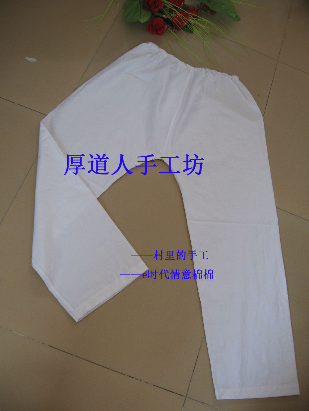Handmade pure cotton fabric Flex Myanmar Crotch Pants White Tradition Old Fashioned Vintage Style Retro Home Pants Lining Pants Sleeping Pants