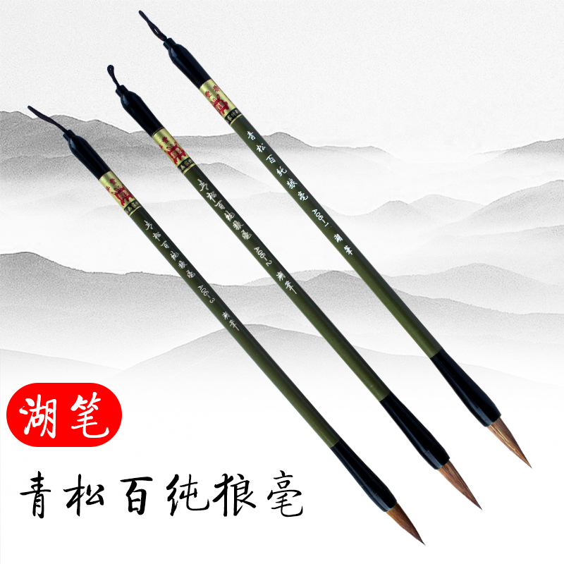 Chinese painting tool brush wolf hair brush lake pen green pine hundred pure wolf hair large, medium and small watercolor pen