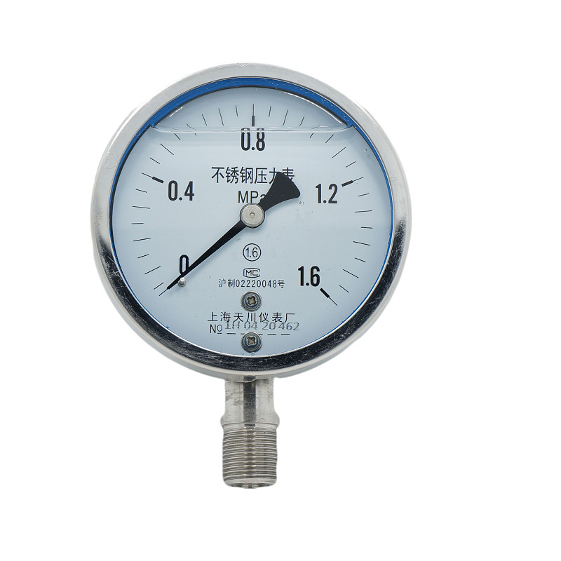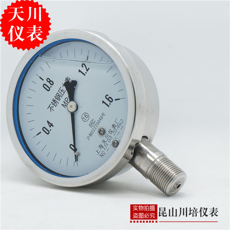 Shanghai Tianchuan Instrument All stainless steel 304 earthquake resistant seismic pressure gauge YN-100BF high temperature anti-corrosion oil pressure