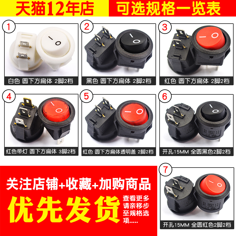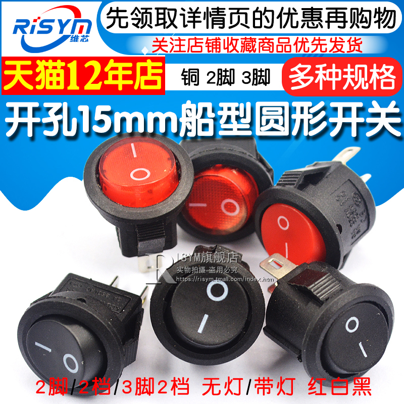 Ship Switch Ship Round Warp Power Switch Small Red Button 3A 250V Opening 15mm