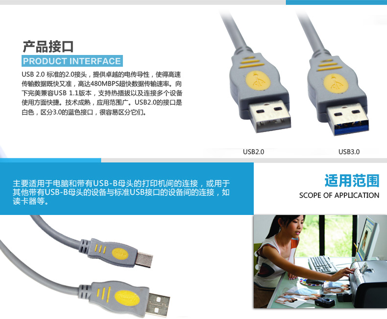 Kyohwa Grey Wire Series USB Print Line Standard 2 0 1 5 m with shielded magnetic ring for one year package change