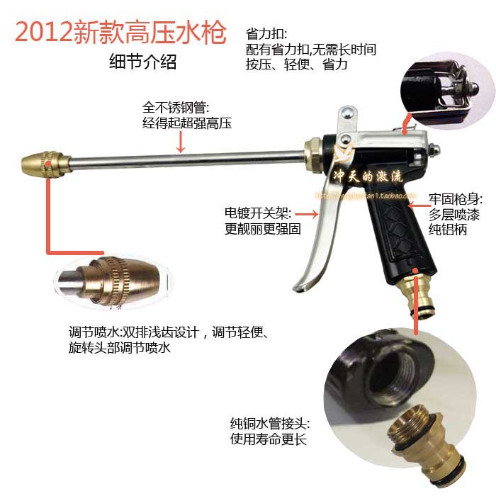 Copper all-metal car wash water gun Car wash high pressure water gun All copper joint Car wash water gun home