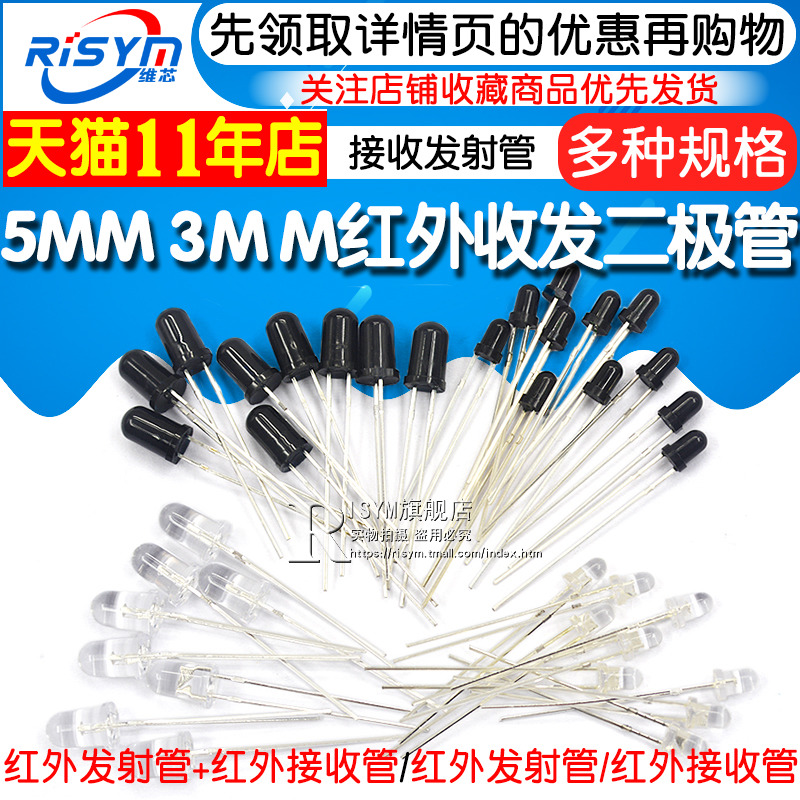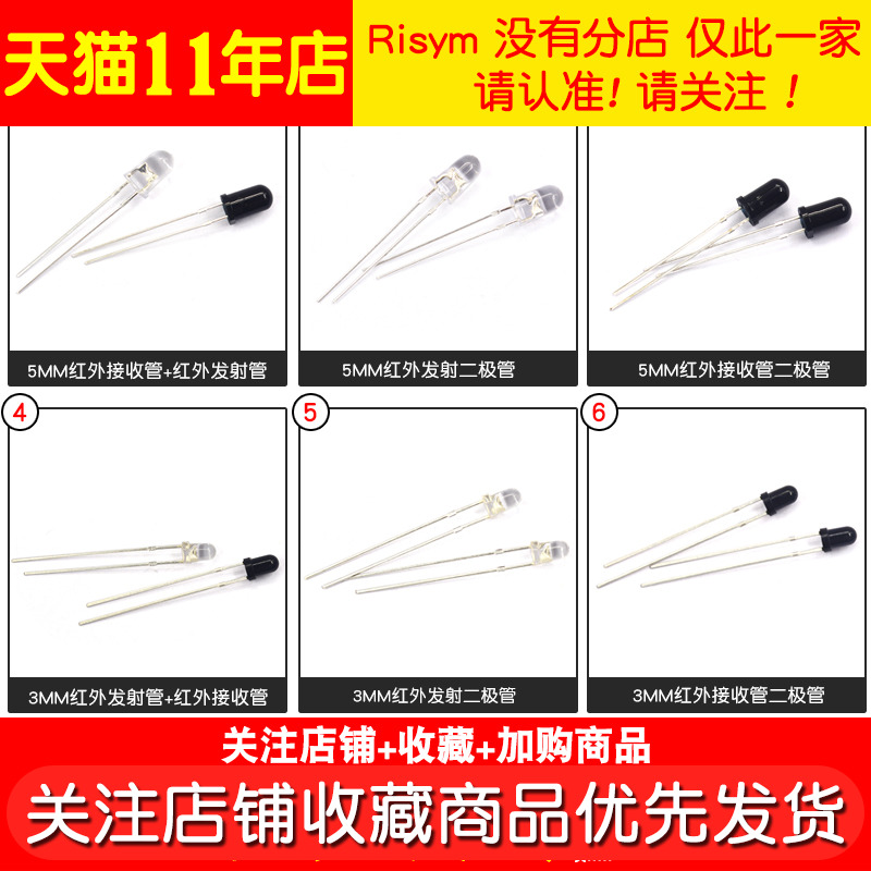 5MM infrared receiving tube infrared transmitting tube (10 pairs) 5MM infrared emitting diode (10 pieces) 5MM infrared receiving tube diode (10 pieces) 3MM infrared emitting