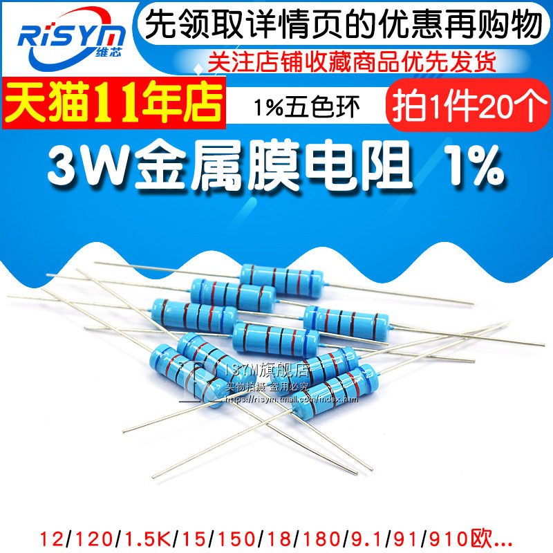 3W Metal film resistor 1%Five-color ring 12 120 1 5K 15 150 18 180 9 1 91 910 ohms
