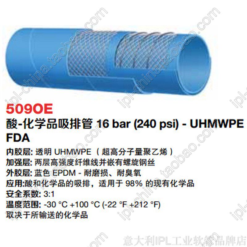 Supply blue anti-oxidative wear-resistant ultra-high molecular weight polyethylene chemical acid-base solvent suction and discharge food hose