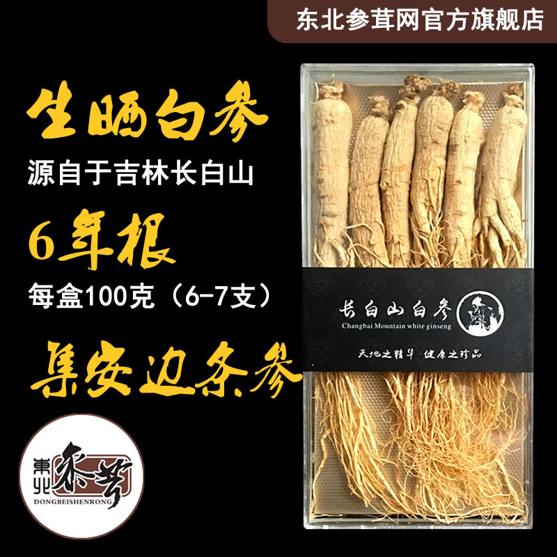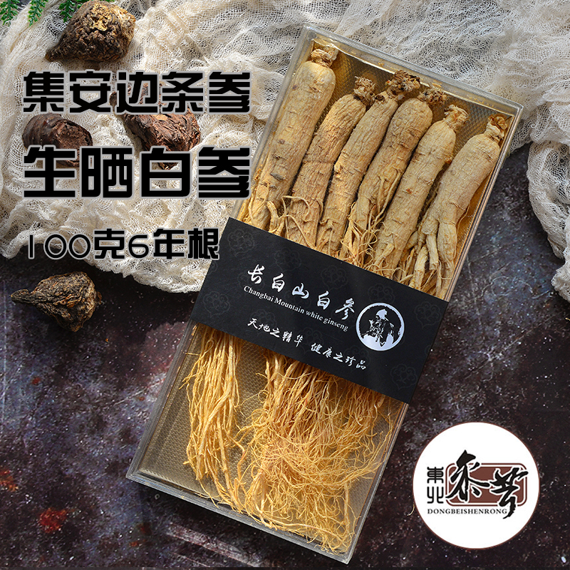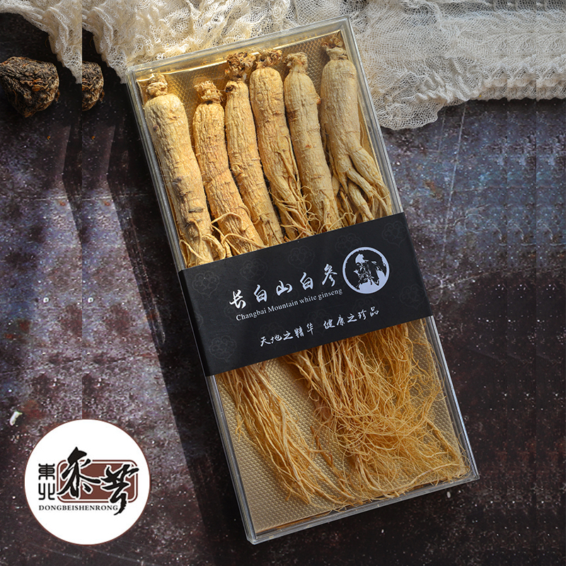 Buy two to send a white ginseng Changbai Mountain ginseng Ginseng Whole Branch Northeast Special Ginseng Gift Box Raw Sun White Ginseng 6 years Root 100g