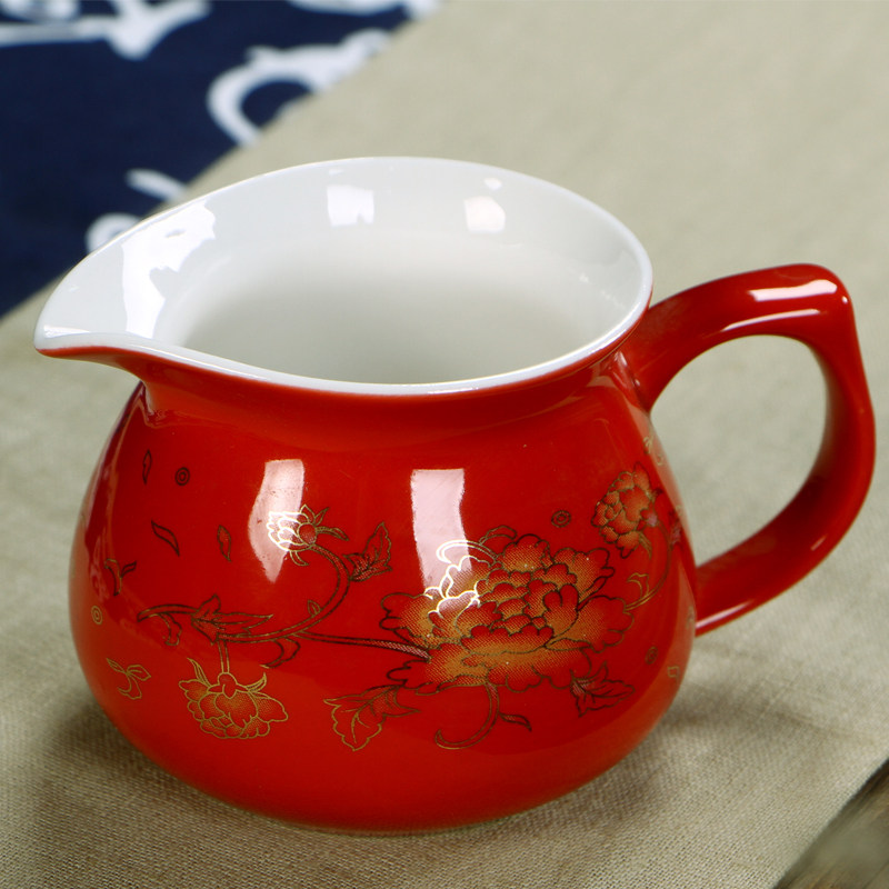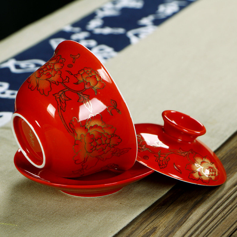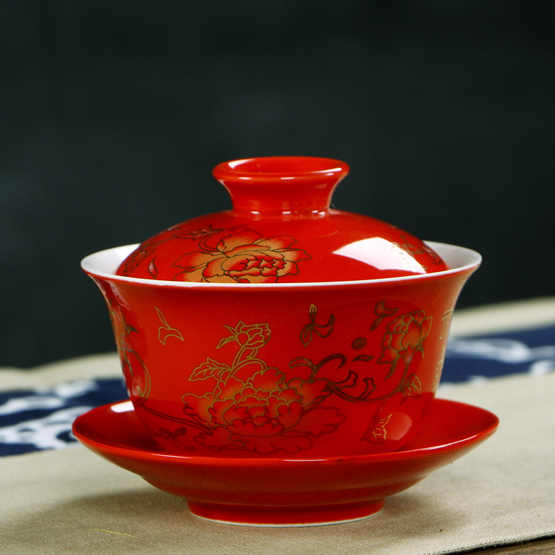 Brand whole set of Gongfu tea set set Dehua County porcelain gold peony wedding wedding toast tea cup new wedding gift