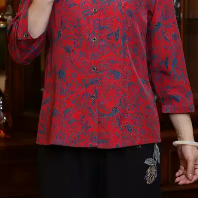 Silk middle-aged and elderly women's summer mulberry silk mother's old lady long-sleeved shirt top