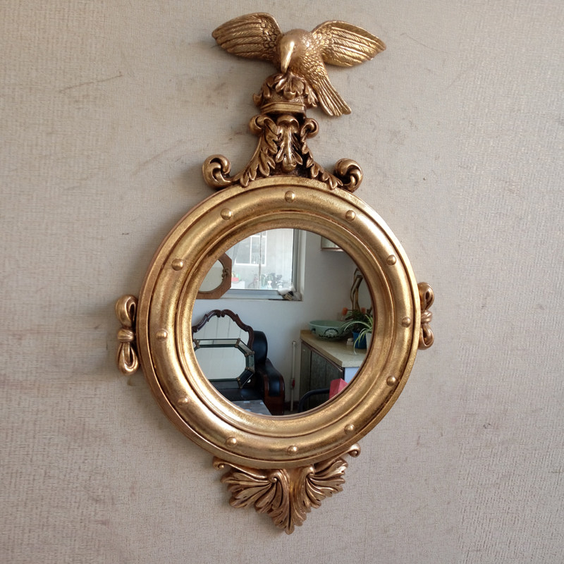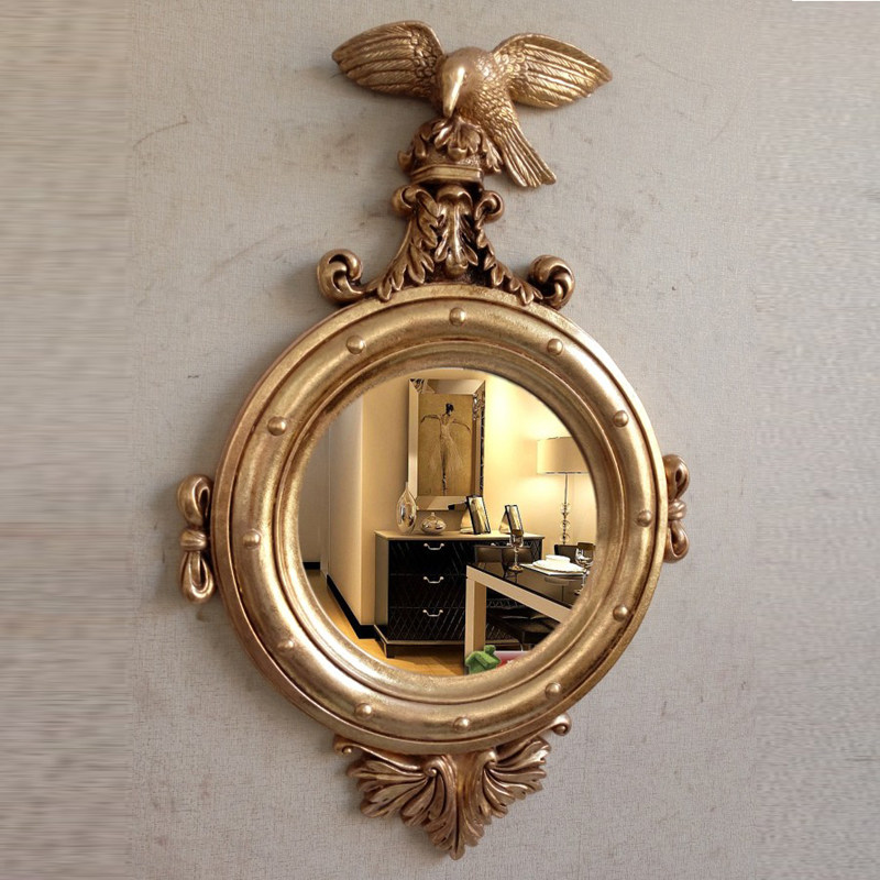 Eurostyle Bathroom Mirror Wall-mounted Mirror Round Make-up Mirror Retro Golden Bathroom Mirror Hyun Guan Mirror Cosmetic Mirror Eagle Decoration