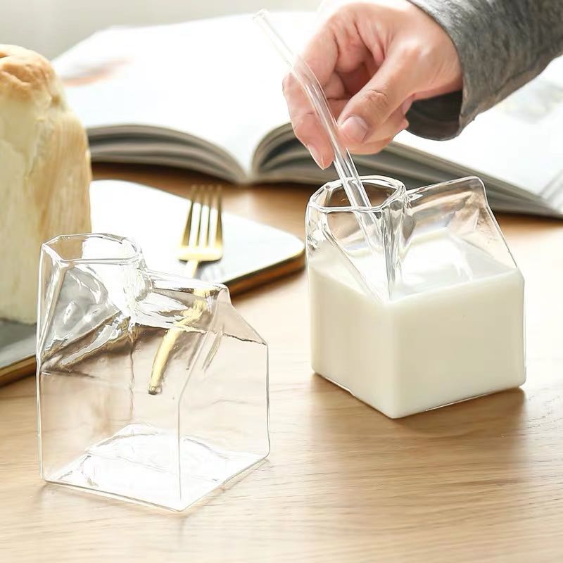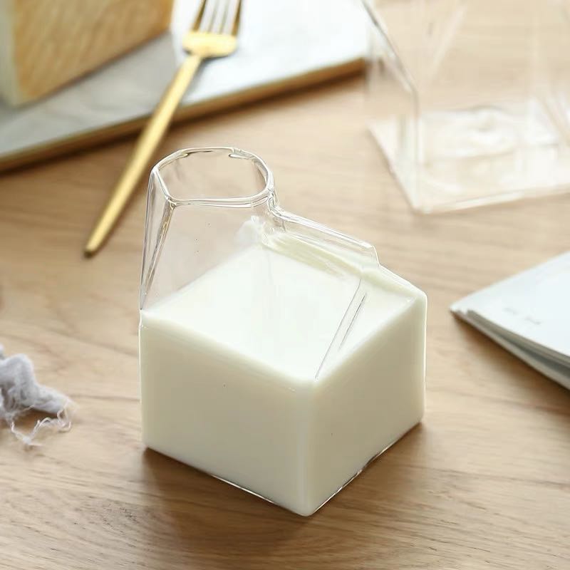 Creative Japanese square milk cup high temperature resistant juice glass milk box fresh milk box home breakfast cup