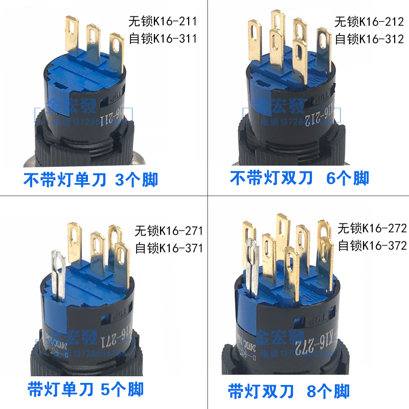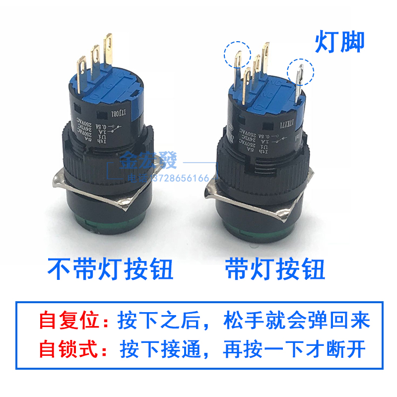 Jinhong small push button switch round 16MM self-reset self-locking with light power start stop K16-211