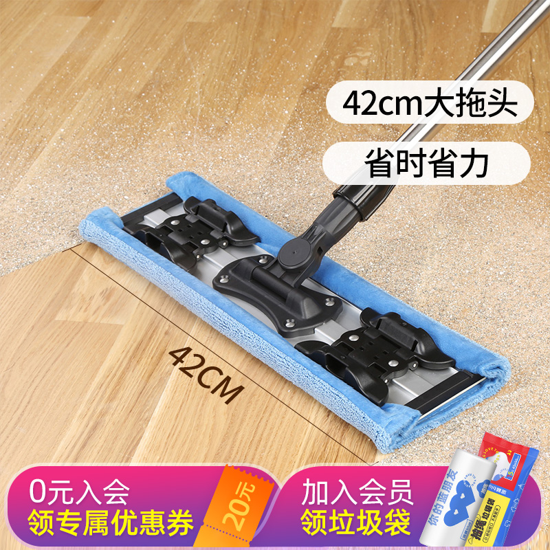 Melia large household flat mop lazy man one mop tile floor net clamp type stainless steel wood floor mop