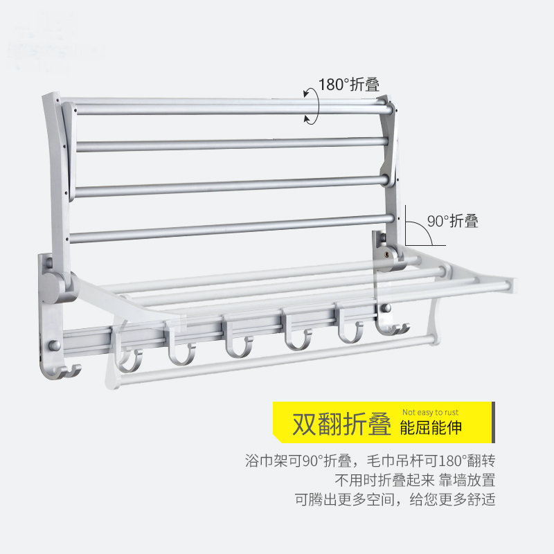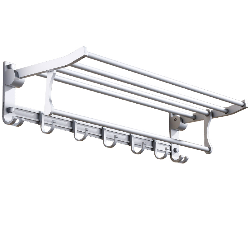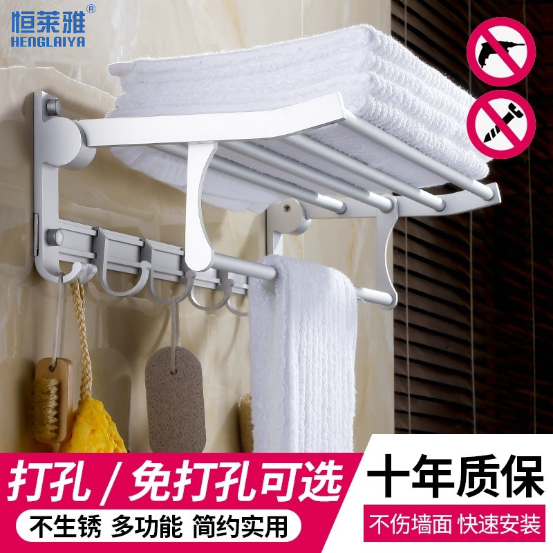 New Space Aluminum Bath Towel Rack Fold with hanging clothes hook Makeup Room Hair Towel Rack Pendant Bathroom Shelve Free to punch