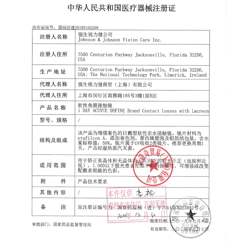 Johnson & Johnson Color Contact Lenses Myopia Daily Disposable Box Myopia Color Contact Lenses Small and Large Diameter Mixed Blood 30 Pieces for Men and Women Net Red