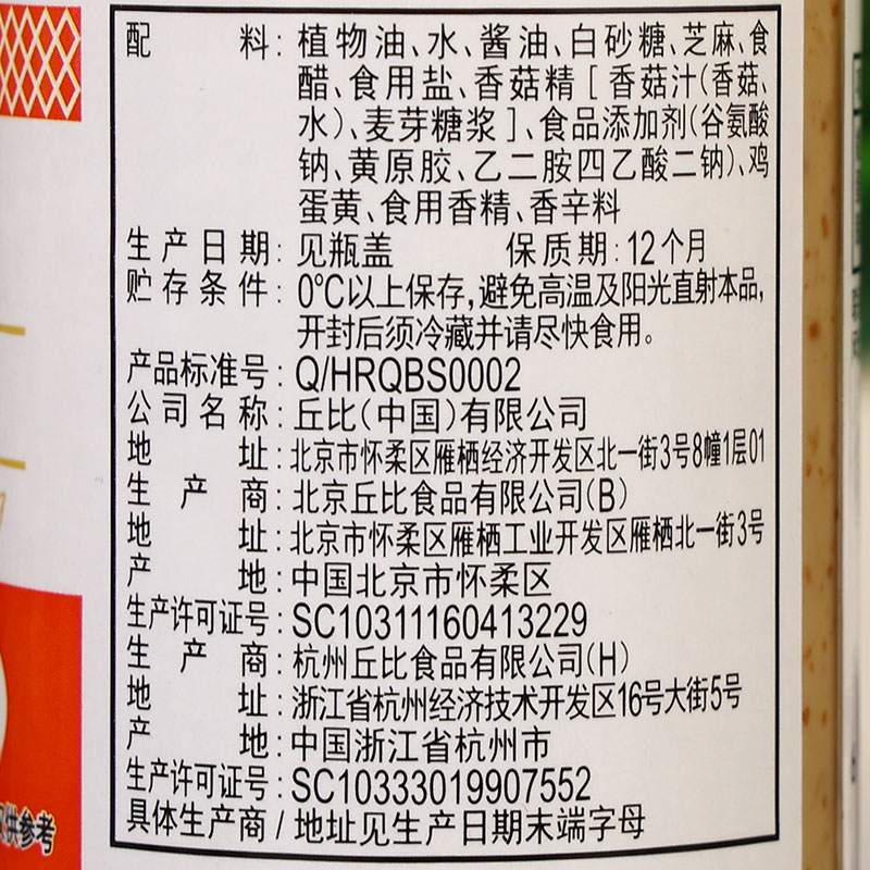Vegetable Oil Water Soy Sauce White Sugar Vinegar Sesame Mushroom Extract (Mushroom Juice Malt Syrup) Edible Salt Food Additives (Sodium Glutamate Xanthan Gum Disodium EDTA) Egg Yolk Edible Flavor Spices
