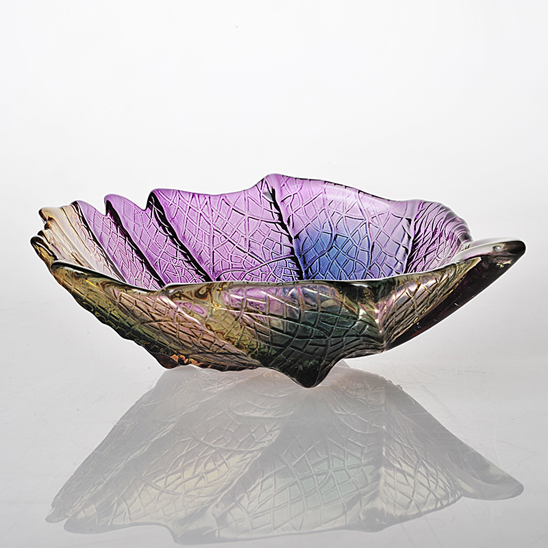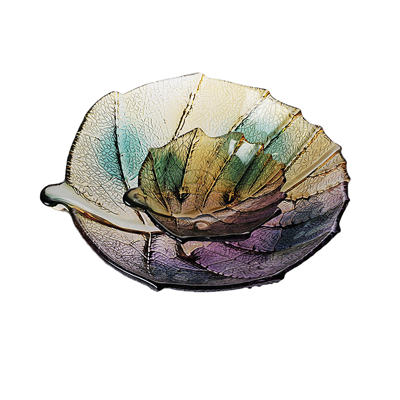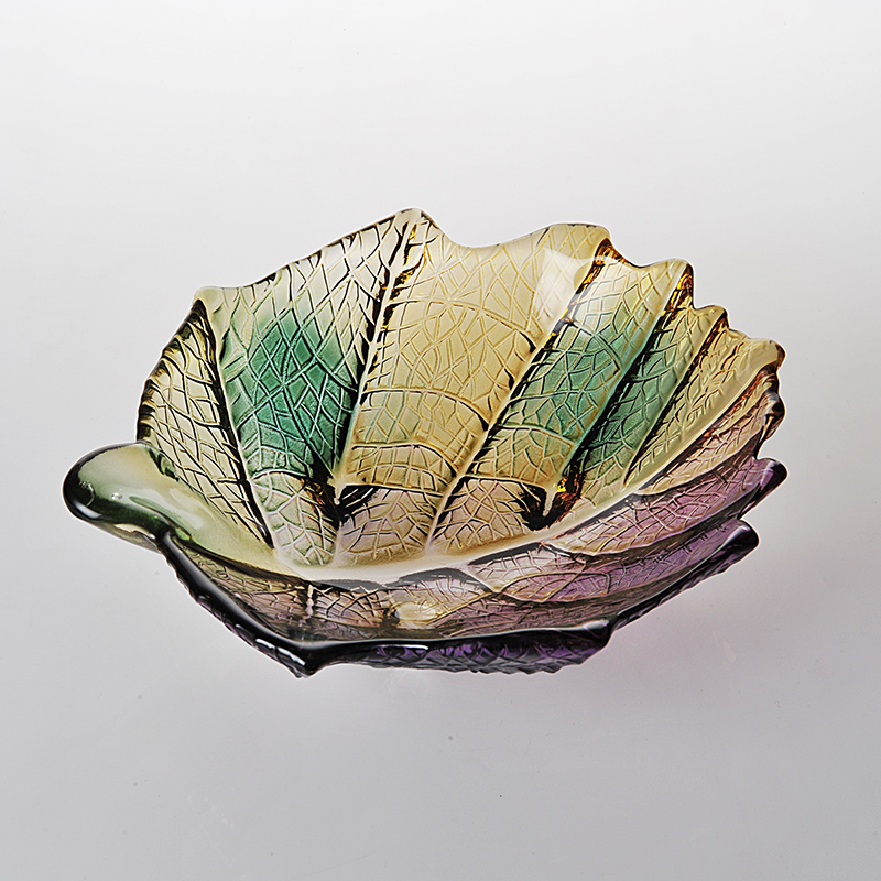 Crystal glass fruit plate Fruit bucket Leaf-shaped glass fruit plate Color dry fruit plate Lead-free large European salad bowl