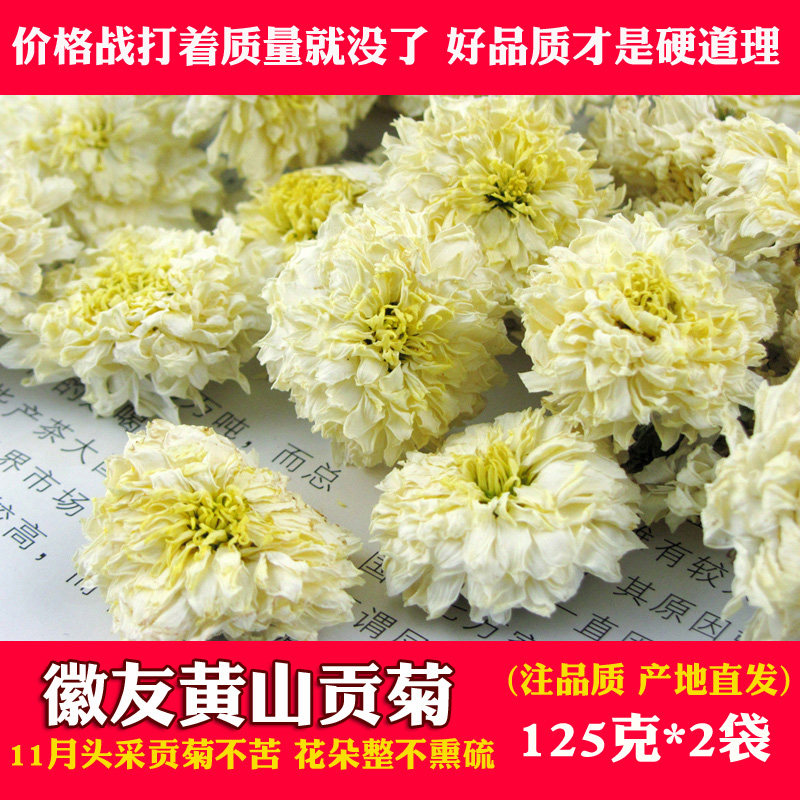 Hui You New Flower Authentic Huangshan Gongju White Chrysanthemum Herb Tea Head Picking Hui Chrysanthemum 125gX2 Bag to Send Gold Silk Emperor Chrysanthemum for Soaking