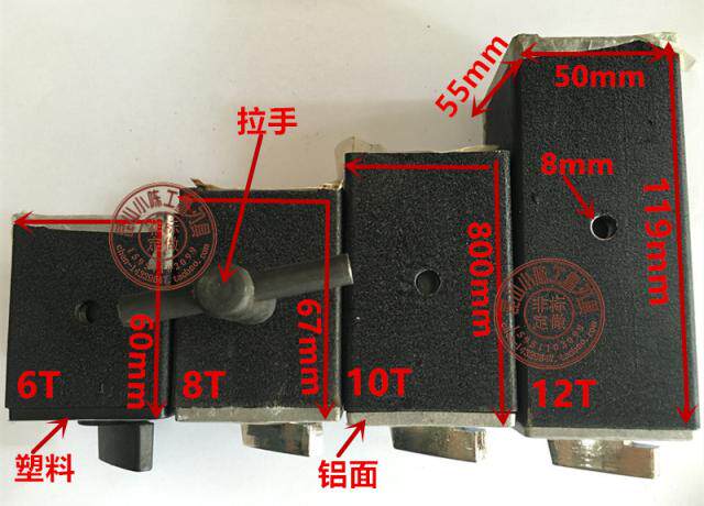Handle 6T-60 * 50 * 55 plastic face 6T-60 * 50 * 55 aluminium face 8T-68 * 50 * 55 aluminium face 10T-80 * 50 * 55 aluminium face 12T -