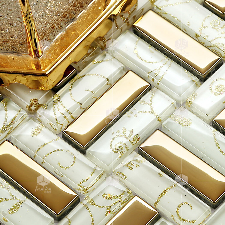 T Jingying 166 gold crystal glass TV background wall sticker electroplated mirror mosaic tile powder room