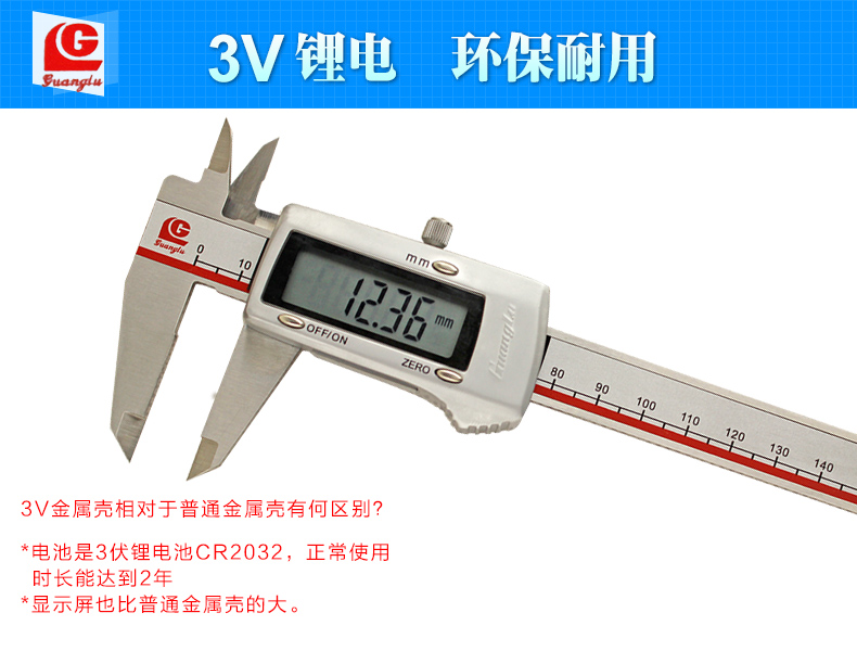 Guanglu digital caliper 0-100-150-200-300-500-600-1000mm metal shell double knife claw