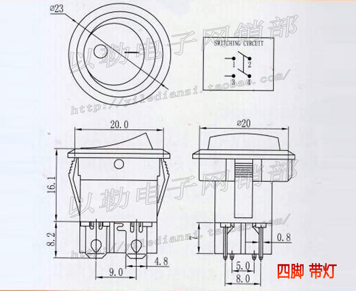 For KCD1 rocker switch round two-way wane switch with lamp 2 stalls 4 foot single throw double knife electrical power switch