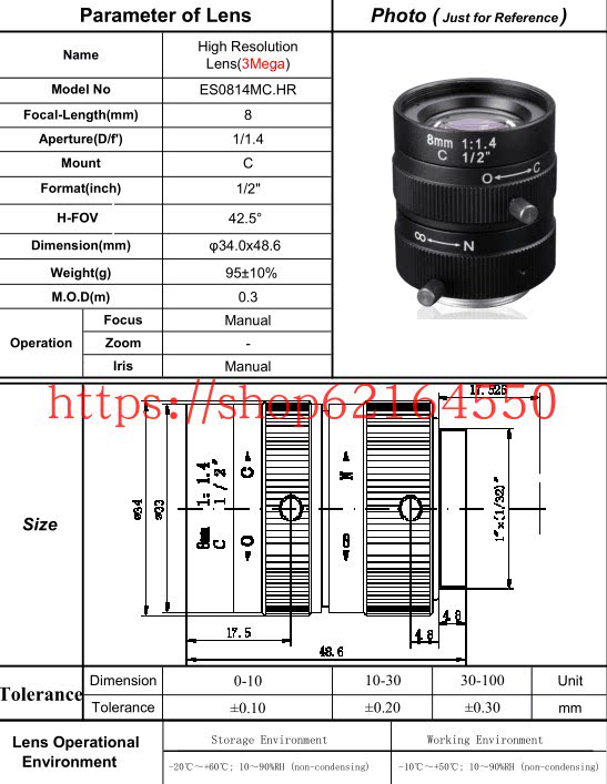 6MM 6MM 12MM C Interface 5 million Pixels 8MM Manual Aperture Industrial Camera Lens 1 2 dici