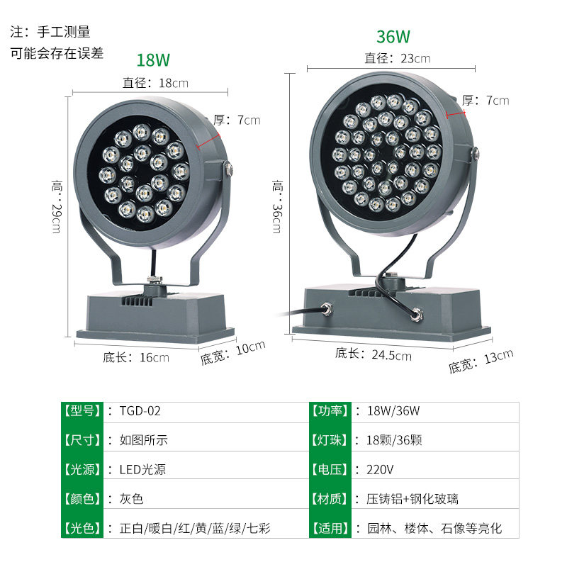 18w white light 18w warm white light 18w red, green and blue and yellow (4 choice 1)18w color change 36W white light 36W warm white light 36W red, green and blue yellow (4 choice 1)36w color