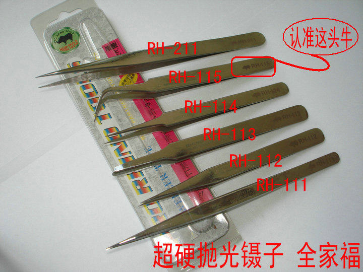 Japan Rhinoceros brand RH-114 imported tweezers short tip super hard tweezers tweezers polishing tweezers