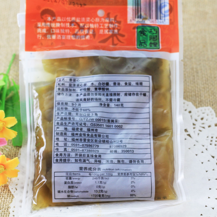 (15 packs)Fujian specialty breakfast side dish Qiao Ah sister-in-law coriander heart 140g ready-to-eat meals