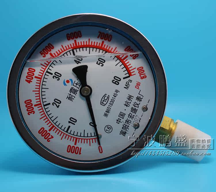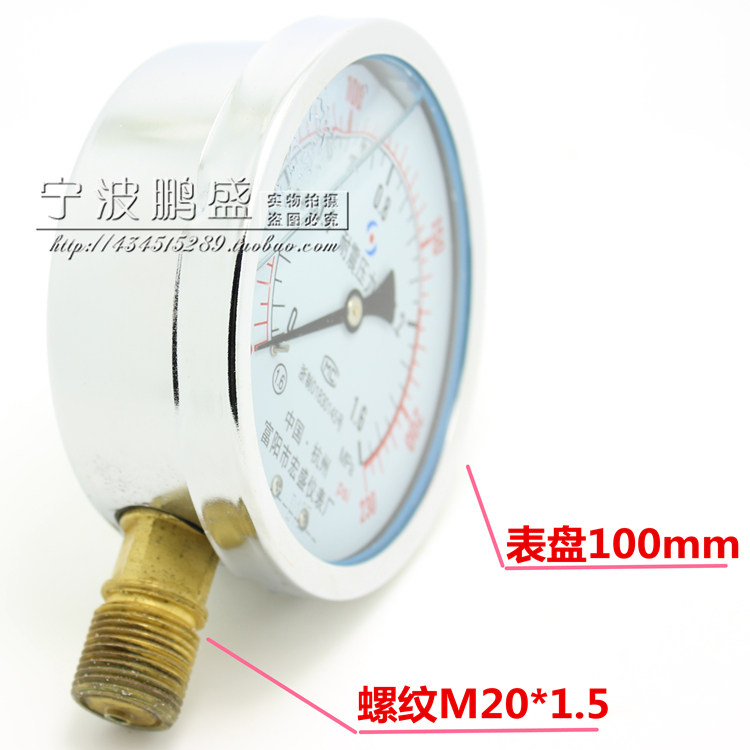 Fuyang pressure gauge YN100 1 6MPA 16 kg shock-resistant pressure gauge shock-resistant high pressure air pressure oil pressure