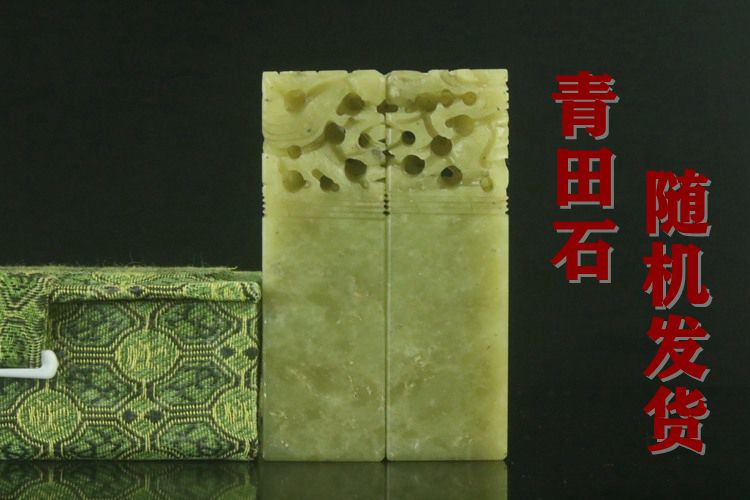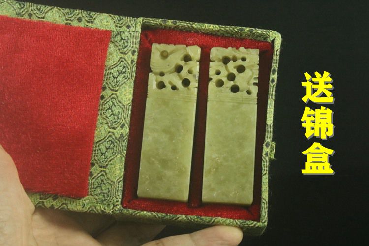 Qingtian stone dragon Phoenix on the chapter gift seal stone 2 5*8 0cm random delivery to send brocade box
