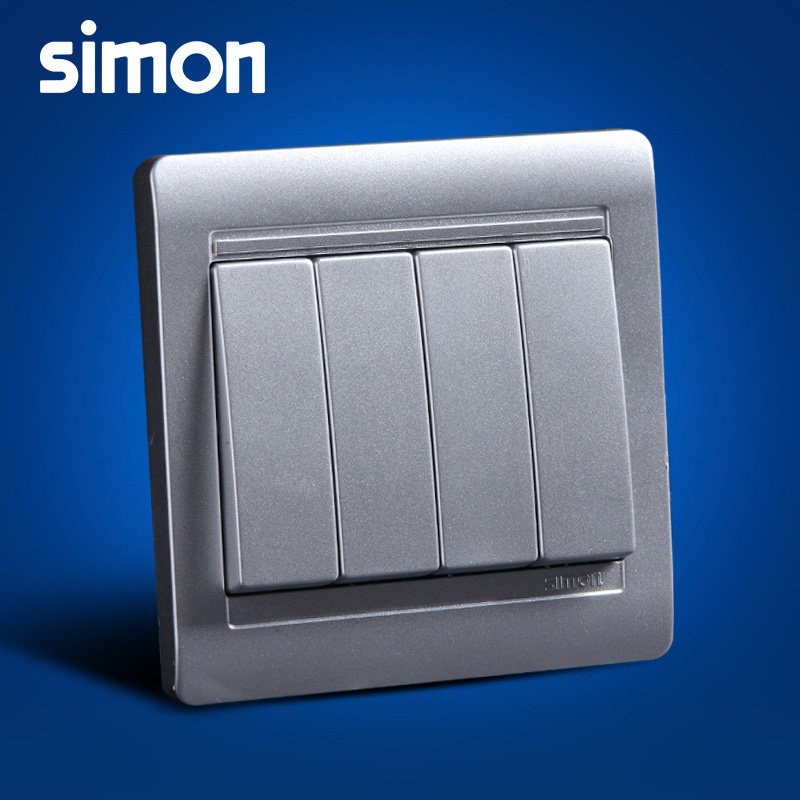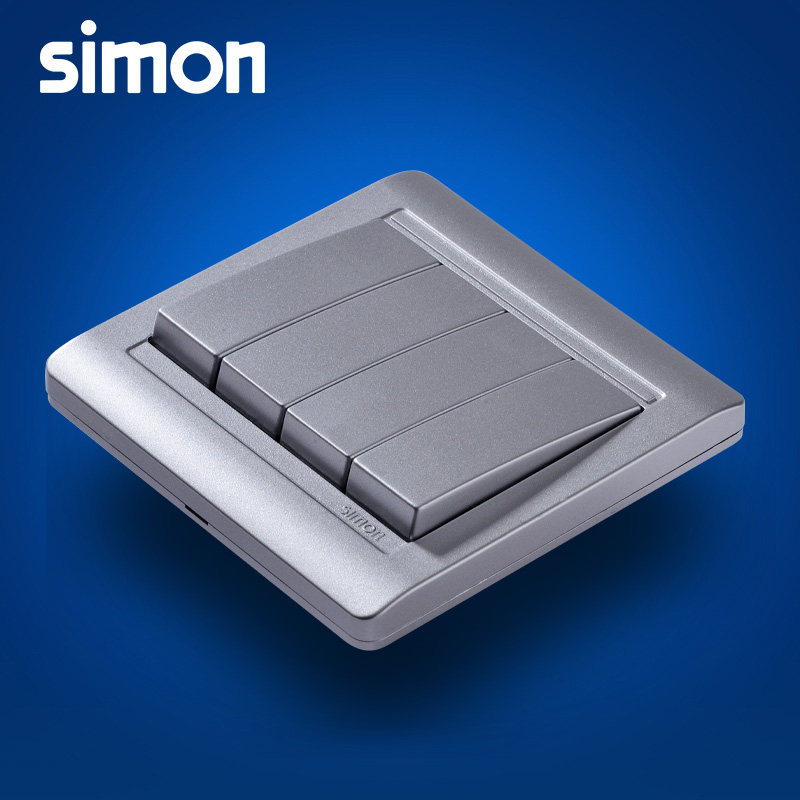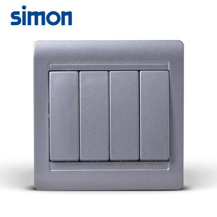 Simon Switch Socket 55 Series Bright Silver Four Open Single Control Switch N51041B-57-Taobao