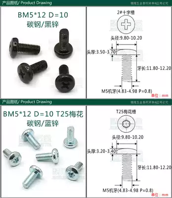 BM5 * 6 D = 7 brilliant nickel 100 BM5 * 8 D = 10 5 brilliant nickel 100 BM5 * 12 D = 10 black zinc 100 BM5 *