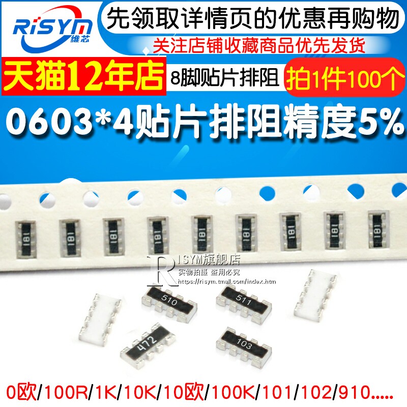 0603*4 SD Exclusion 0 Ohm 100R 1K 10K 10Ou100K 101 102 103 910 8P4R